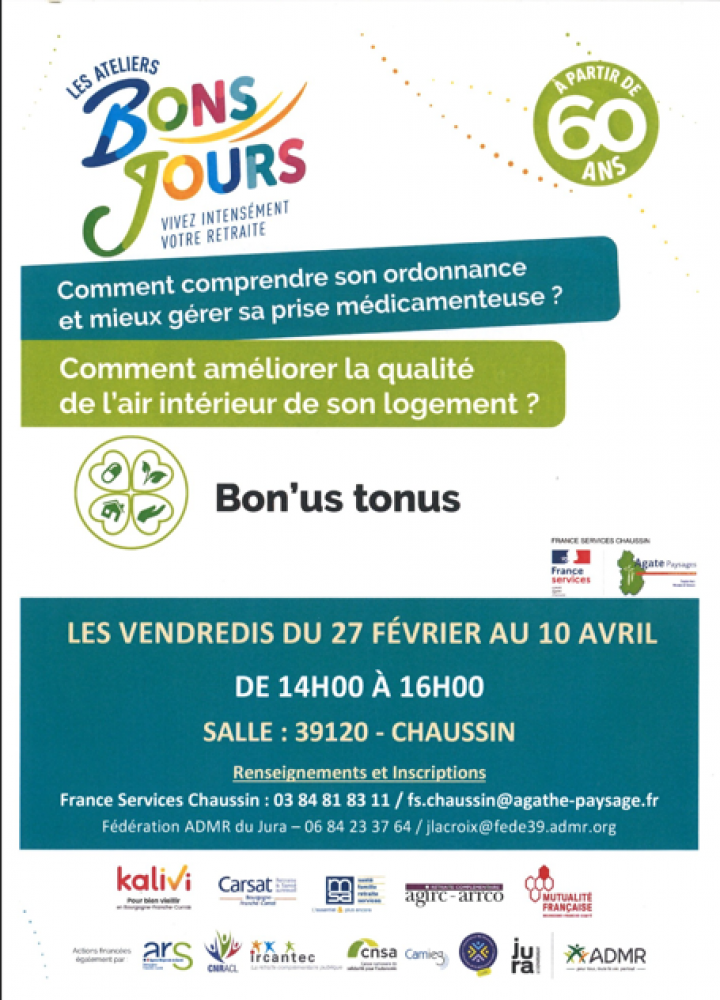 La Maison de Services de Chaussin organise un atelier "Bon'us Tonus", en partenariat avec l'ADMR du Jura.